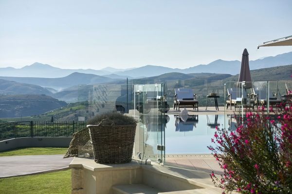 Outside, the villa features a beautifully landscaped garden with an ecological swimming pool, a counter-current swimming system, and plenty of relaxation spots to enjoy the stunning views.