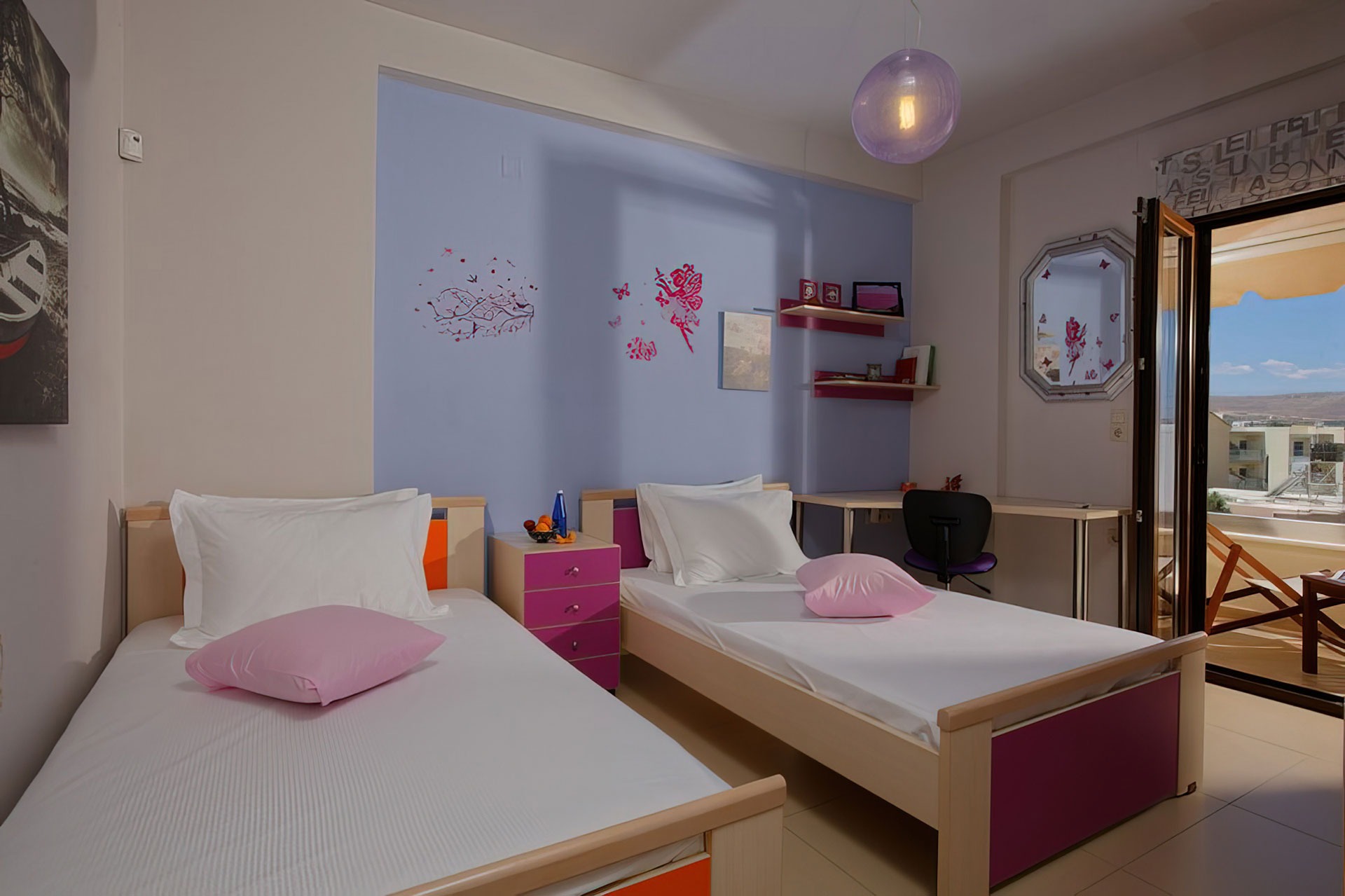 The second bedroom has 2 single beds, work desk, large closet, A / C and also has a balcony with electric shading awning. The third has a double bed, large closet, work desk & A / C.