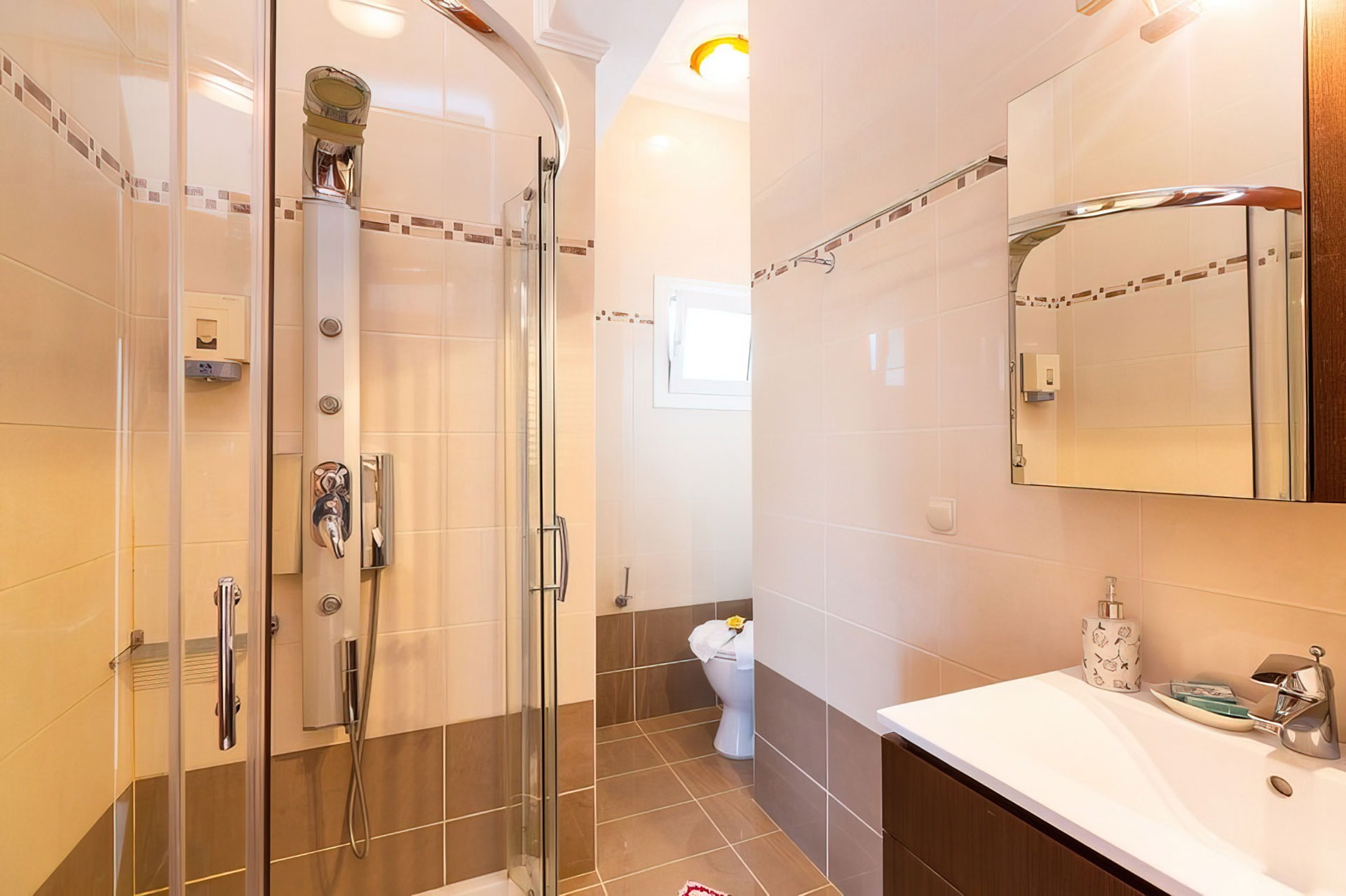 Villa Ekaterini Vip is simple but elegantly decorated with modern furniture. Features a wooden balcony, 4 bathrooms and 3 bedrooms, one with hydromassage. Includes 2 living rooms with fireplace, 2 fully equipped kitchens and 2 dining rooms. A welcome basket is available on arrival.Nearby you will find taverns, cafes, mini markets and other shops.